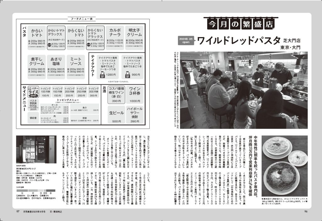 月刊食堂 2025年9月号 今月の繁盛店